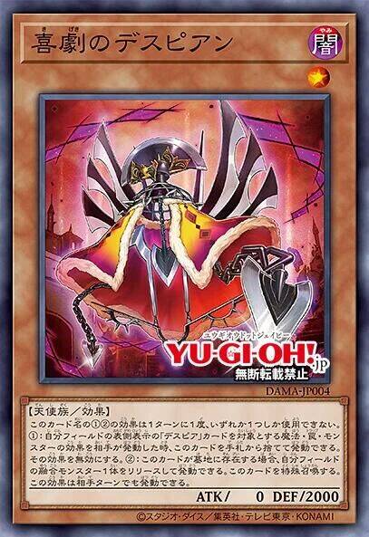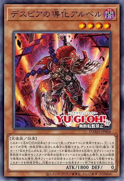 ①:自己的手牌选1张丢弃。那之后,从卡组将1只「デスピア」怪兽加入手牌或守备表示特殊召唤。这张卡的发动后,直到回合结束时自己不是融合怪兽不能从额外卡组特殊召唤。