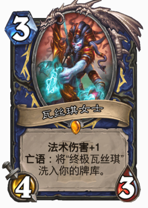 瓦丝琪女士的亡语能将一张7费的终极瓦丝琪洗入牌库,而终极瓦丝琪能够抽三张牌库中的法术牌并将其减少三费。简而言之就是抽卡,并减费。就抽卡而言,当前标准天梯各强势卡组显而易见的共同点就是不亏节奏的抽卡(滤卡),例如法师的清凉泉水,盗贼的原野联络人、秘密通道,骑士的逝者之剑,削弱前瞎子的头颅等等。流畅的过牌也成为了诸多玩家喜爱某一套卡组的主要原因之一,因为它极大的提升了玩家的出牌选择空间,提升了对局的趣味性。而纵观标准职业卡池,萨满的抽卡手段除瓦丝琪外只有笼斗管理员和法力之潮图腾。没有优秀的过牌手段,使得正确的牌序成了萨满制胜不可忽视的因素。但3费裸下一个443显然已经跟不上时代,直到泰兰·弗丁 的出现使检索终极瓦丝琪成为了可能。这将极大的弥补了萨满抽牌不足的短板,而且定向检索法术并减费为萨满提供了不少的操作空间,就目前卡池而言减费AOE可清场,减费直伤可OTK。