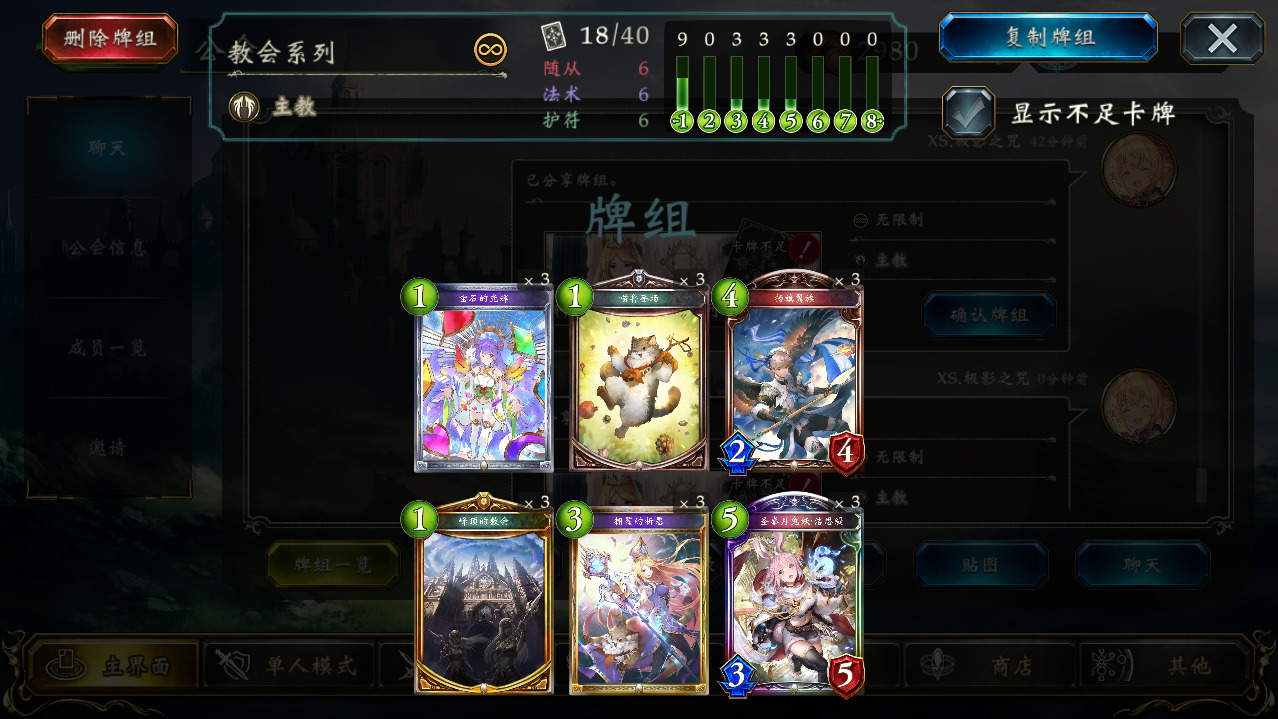②1c能出吟唱护符就尽量不要出教会,但如果为了配合4c多符圣里奈则要反之,把吟唱护符适当保留,如将喵鲁登场保留至第三回合,但要斟酌是否第一回合打出效果会更好。