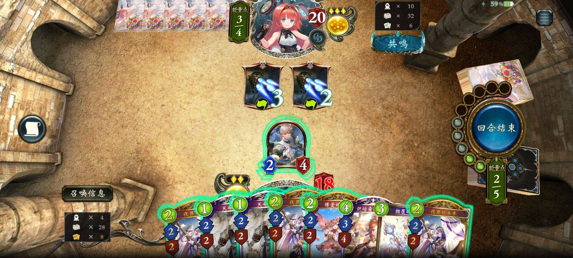 上图为某局对局中我在5c之前只打出过一张结晶扬旗翼族,而此时手牌状态如上,并且下一回合抽了一张兔子。在这种情况下我依然坚持和对方周旋,将他的资源耗尽(其实对方也不是很顺),赢得胜利。