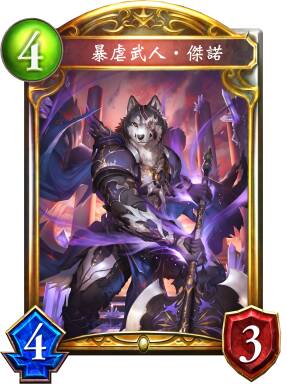 暴虐武人·杰诺拥有很高上限,有机会作为附带单解的5/3疾驰登场。除了打出上限的情况以外,杰诺还可以配合主动进化的迅捷的剑士、自由的冒险者、浪游厨人等组件,以牺牲节奏为代价快速抢血。