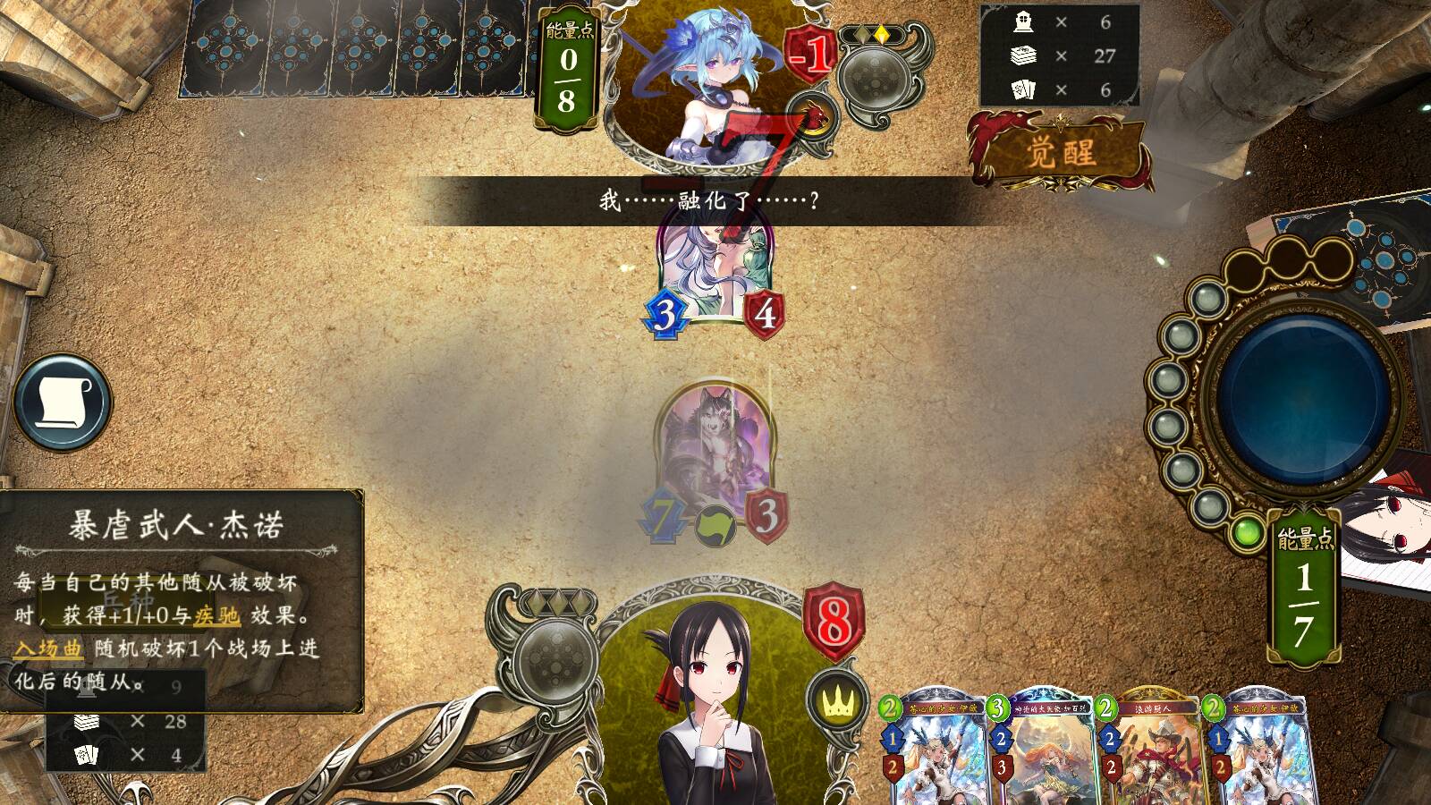 -对法以外的职业时,有冒险者,或先手有蜥蜴的话,留浪游厨人。对死直接留厨人。