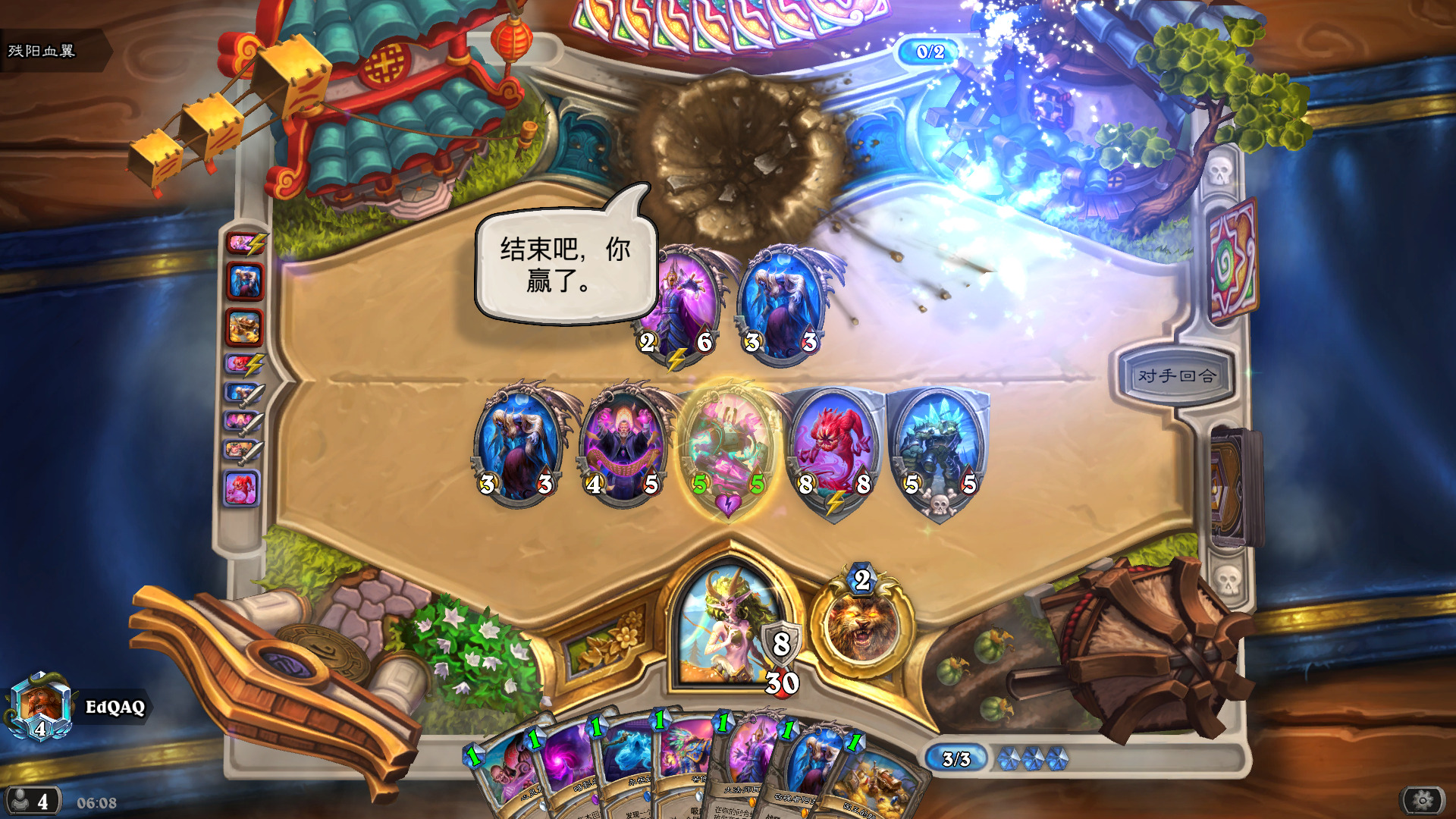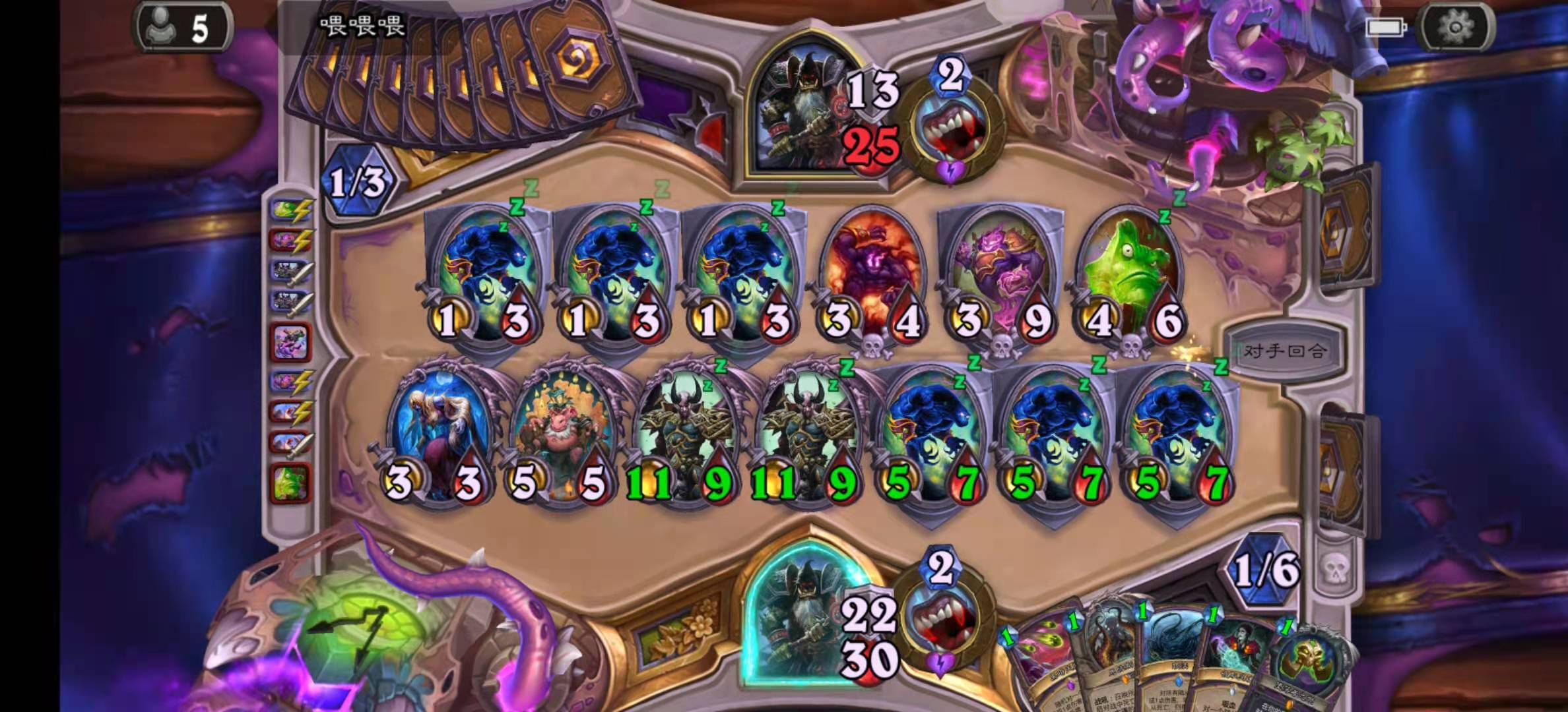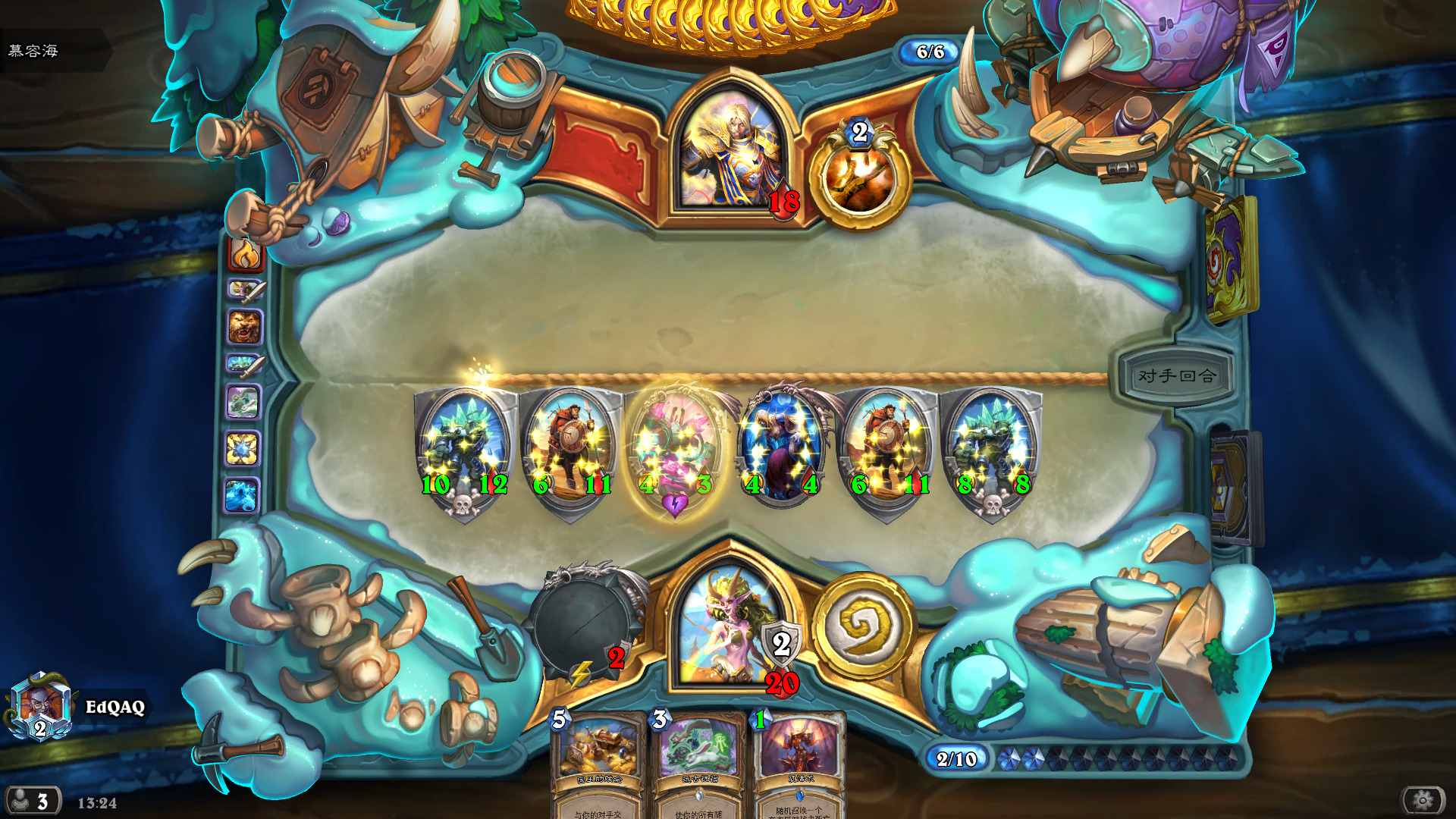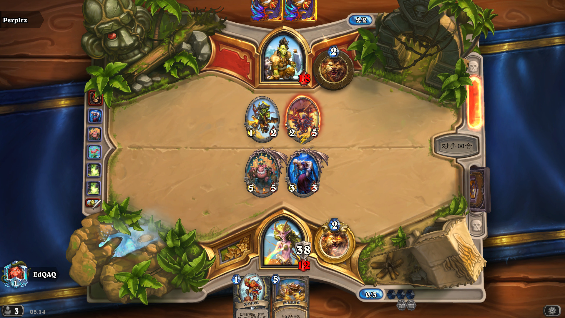 - 任务贼:大劣,注意在对方开任务之前横扫解掉一地小怪,不然很可能被一套带走,剧毒之种在这个对局是没用的,因为对方的随从永远是5/5。