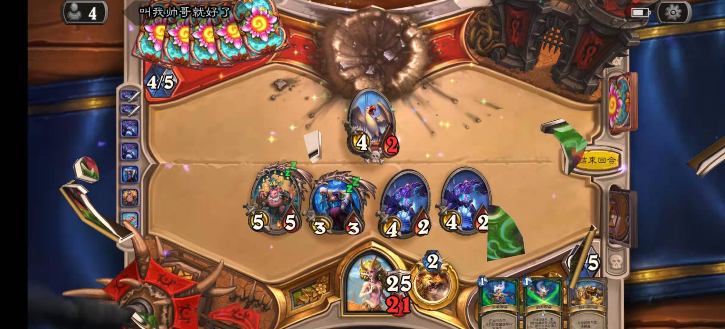 - 偶数萨:劣势,如果准时橡树的召唤而且对方又卡手的话可以一战。图腾要尽量解干净,有些偶数萨是带八爪巨怪的,我们可以先打出换家再解掉八爪巨怪斩杀。