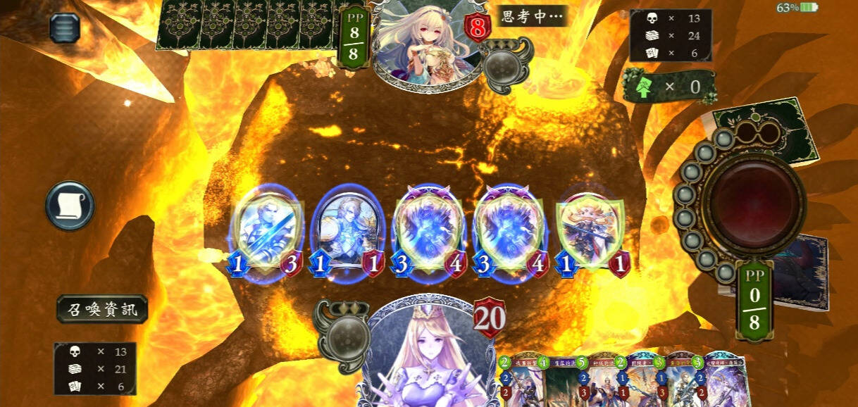 雪华妖:64开。在他的虚弱时间铺场冲脸养成大兔子,前期的雪华妖完全没有解场能力。阿丽雅进化以后的雪华妖解场能力陡增,场要铺但主要是给狐耳做人任务。这时要拖到8费使用风军斩杀。在防守对手斩杀时要注意对手的任务完成度,斩杀回合时一爷和巴隆的存在至关重要。注意现在的雪华妖会携带元素斩击,能清理的场面要尽量清理完。在这个对局中进化点尽量交给法王,触发他的奶4效果,可以在阿丽雅的蹭血中多撑几回合。