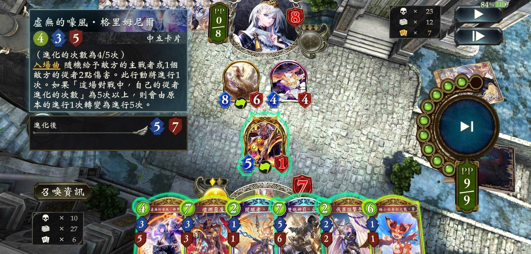 娇小的赤红之龙·碧——进化任务组件,同时增加了稳定度。如果是后手我一般打出过牌,而先手由于少一个进化点的缘故,一般我会选择进化。
