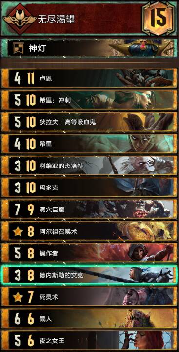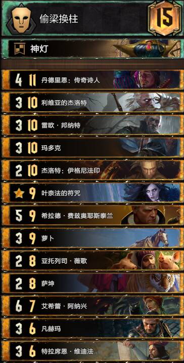 打法上r1无脑开双希里去换掉对方的杰洛特,之后靠吞噬马多克和卢恩游戏就非常简单了。