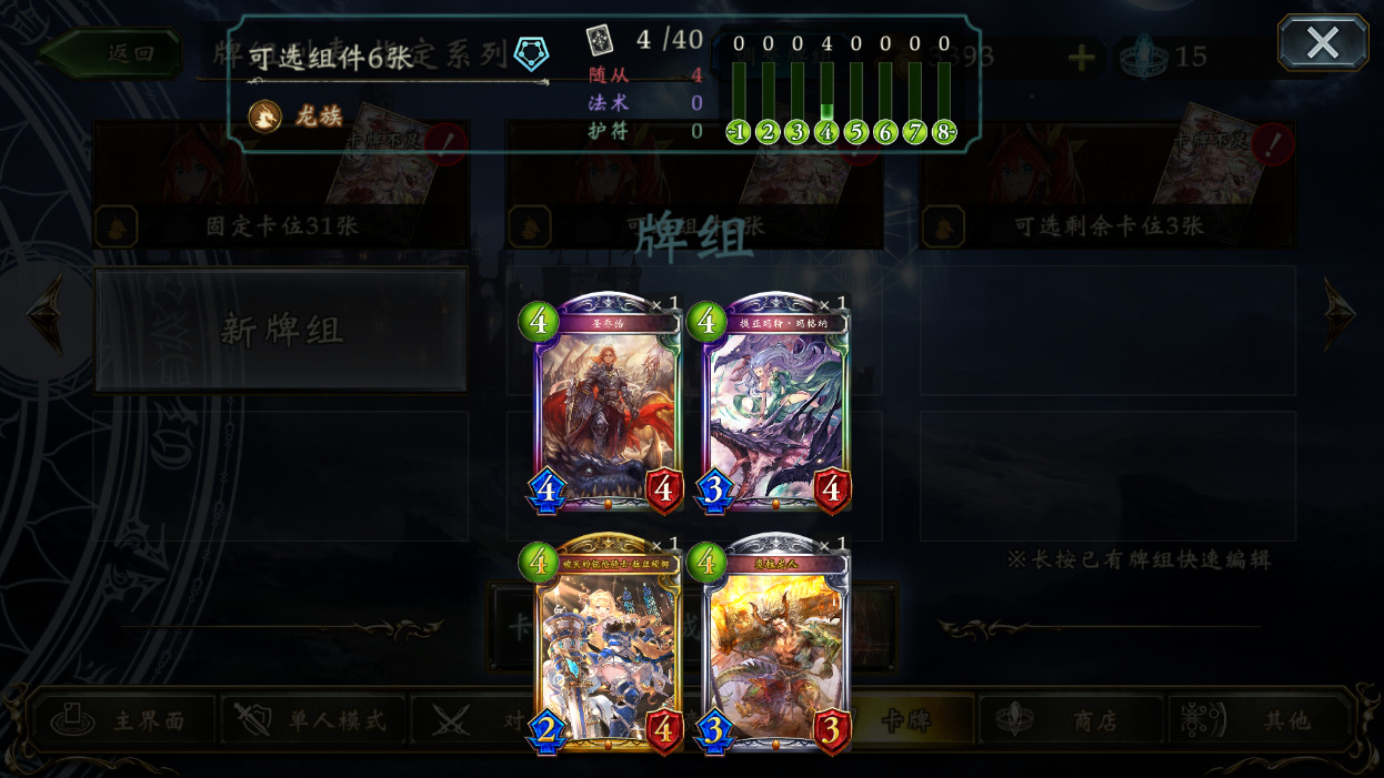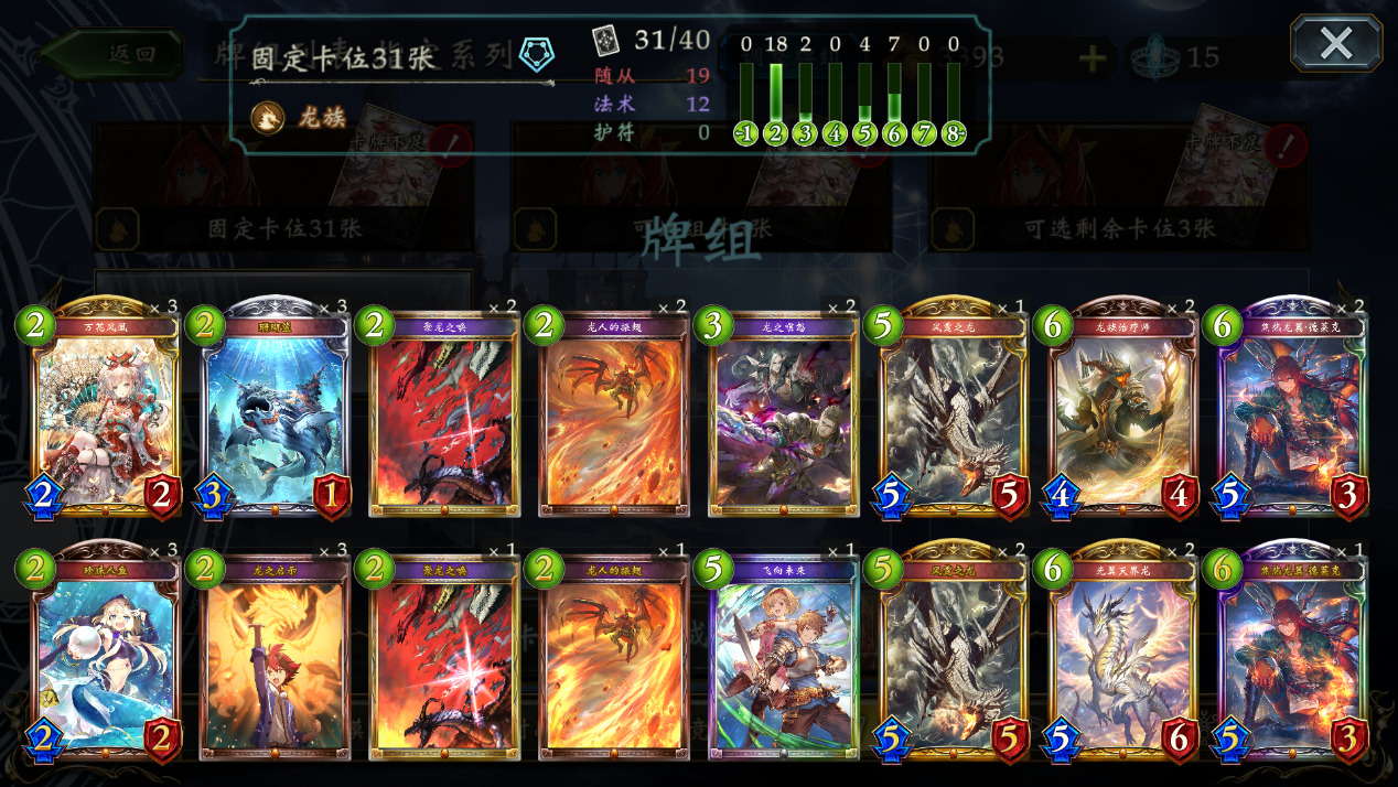 屁股龙嘛,起手自然要找buff牌和跳费了(龙之启示永远的神),【珍珠人鱼】和【焦热龙翼·德莱克】有多少留多少。【风霆之龙】也要留一张,但是第二张就不建议留了,容易手牌暴毙,但是这张牌在绝大部分情况下,都是最优先的进化回合动作,尽可能保证前期进化至少一次,而且后面一般进化越多,越厉害。【龙人的振翅】在先手或者手里有其他可留buff再留。【光翼天界龙】不留,这东西还在卡组里就是因为可以入场8血时抽牌。【万花凤凰】起手只有其他两张牌都可以留的时候再考虑留,大多数时候会用到庭院,而且一般只需要一个庭院。另外,这套牌最快压场是第三回合出有额外效果的【珊瑚鲨】,但是很随缘,如果确定手牌可以做到的话,就可以压一个很强的场面,无论是抢血还是争取场面时间都很有用。