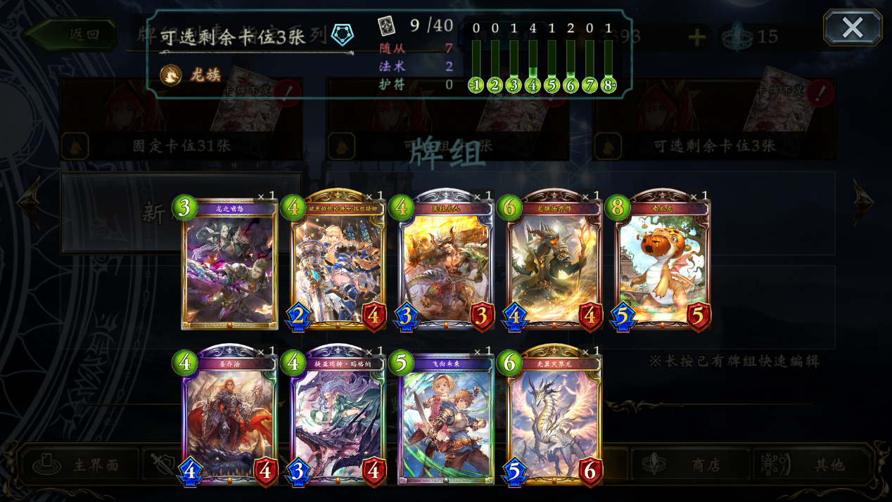 注意留【圣乔治】,不留【万花凤凰】。这个对局注意对手的萨里沙是最大的威胁,有时候为了解掉萨里沙,就算是前期不出随从也要等圣乔治进化解场。丢掉的血量可以靠【龙族治疗师】和【神异形·迪亚马特】奶回来,所以前期3费前要么解干净对手的场面,要么空场。在解除了萨里沙威胁后,剩下的就是稳扎稳打奶起来,这局就拿下了。这个对局里庭院经常后面才有机会拉出来,所以不主动留。