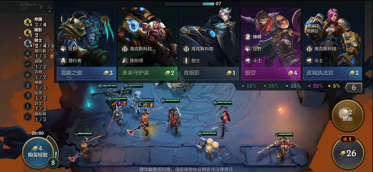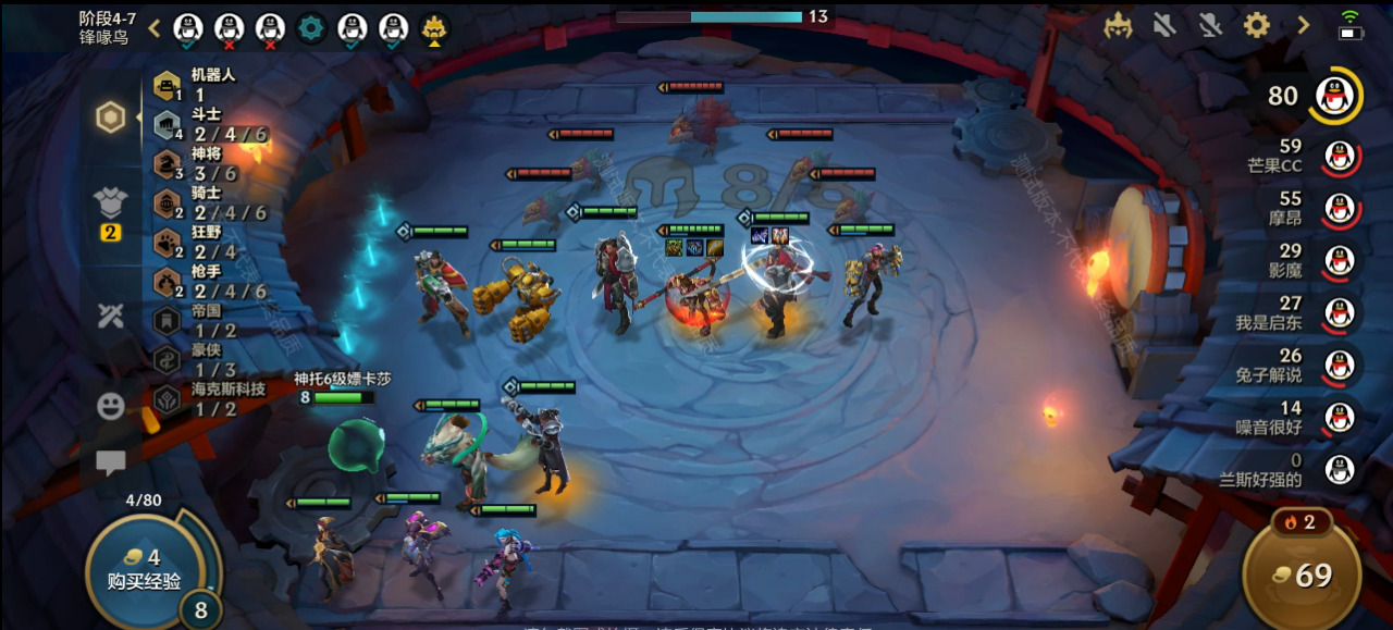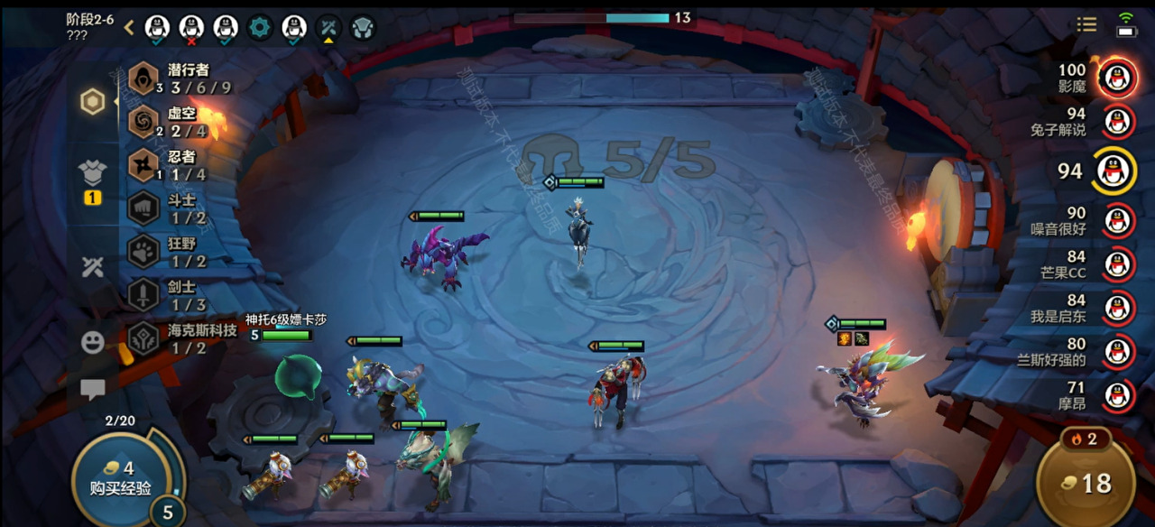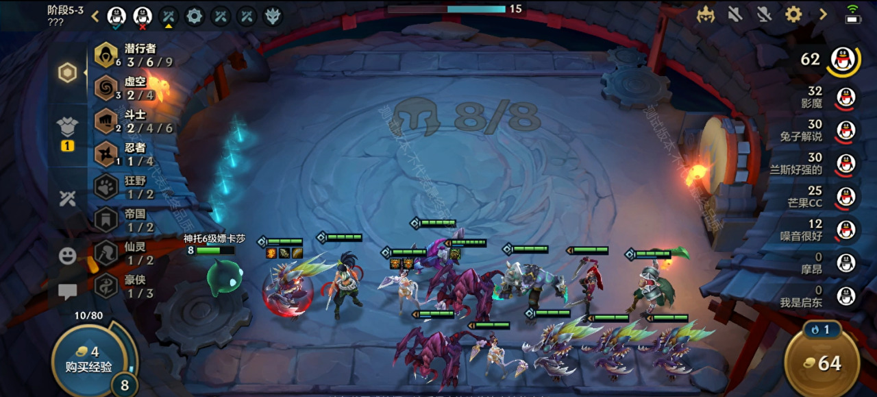由于是全球第一局游戏,大家都不是很熟悉玩法,神托本来准备组建骑士/斗士加枪手的组合来平衡前后排,不过这里虚空掠夺者先到2,我就先拿下来打工了。
