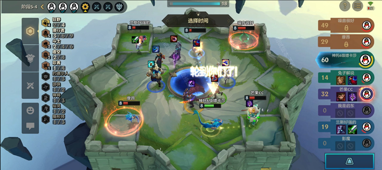 由于过渡阵容十分强势,神托将注意力重点放在针对对手的站位上,以健康的血量和充足的经济来到了5阶段,可惜我们的螳螂再也没来一只了,于是神托准备上9人口抽我们的终极C位卡莎。