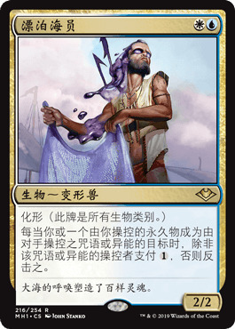 套牌的两费曲线有传形妖和漂泊海员。前者能膨胀我们的变形兽,但实际上我们并没有多少机会来反复起动这个三费的异能。漂泊海员可以有效延后对手点去除的生效时机,在保护场面的同时最大化利雅拉诸熊录第二阶段的价值。