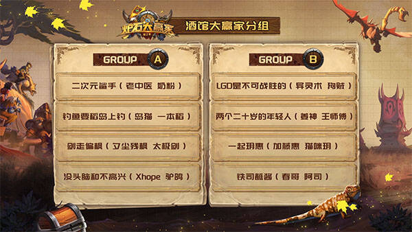 在小组赛中,每组队伍将根据炉石竞技场、经典模式、酒馆战棋的排名情况获得积分,积分相加后排名前二的队伍晋级决赛。