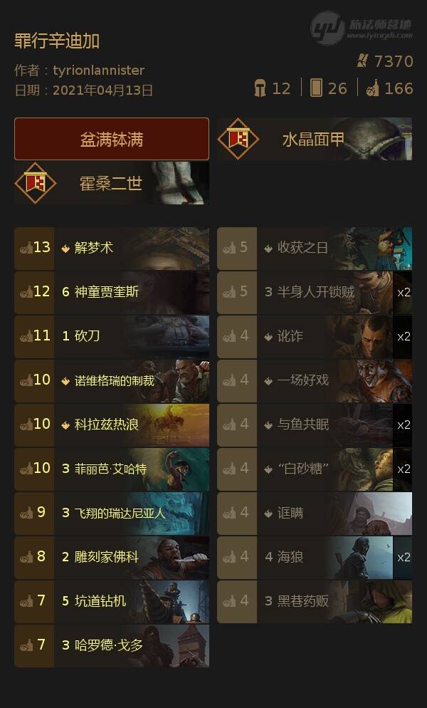 R1同样以半身人开锁贼+诺维格瑞的制裁为点数基础,加上大量铜卡罪行和一张花钱牌去赢下R1;但除对阵群岛可能适当逼牌外,其它对局基本是pass打长R3。