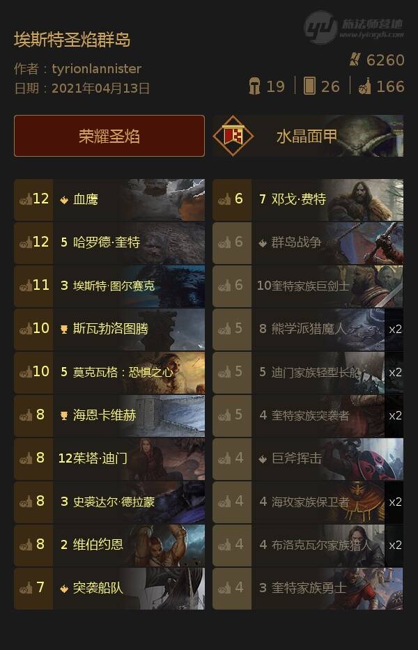 又是一个只有一种主流形态的阵营。只能说,不是群岛的猛男们不行,而是埃斯特实在太太太太太太太超模了。虽然只有荣耀圣焰能完美适配埃斯特,而且也让群岛不得不在构筑中多携带大点数、少携带法术以增强他的发挥,但总体来说都是值得的,圣焰埃斯特群岛彻底取代了上版本的熊战士就是明证。