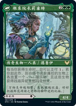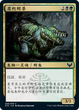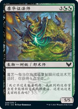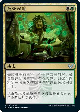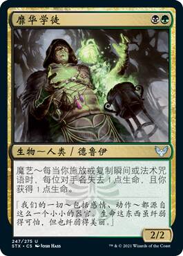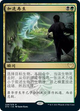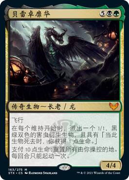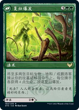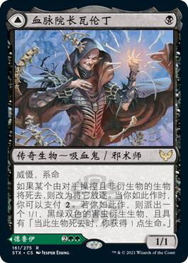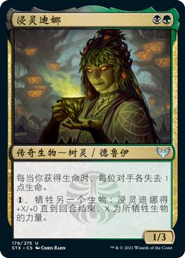 这牌假如没有背面对比,我可能觉得正面还挺强的,只不过这个背面太厉害了。在黑绿里,你随随便便就能回点血,让你的生物们压倒性的膨胀,压死对方。