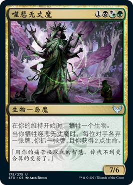 顺便这个牌是牺牲的时候触发抓牌弃牌,并不一定得是维持那个触发,我今天在卡豆用牺牲生物放攻击力等量害虫的黑绿瞬间牺牲这个,出了7个虫子带抓牌弃牌回血,爽死了。