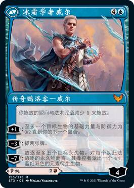 相比什么都做不了的正面,还是背面更强些。威尔可以让对手最大的生物无法进攻,在不被踢死时能补牌,开大的时候你基本已经8个地了,你炸自己5个出20场攻通常意味着下回合的胜利,但这异能很难开出来就是了。