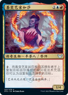 需要生物的时候,这个大概率是个444守护2(放逐个3费打4)或者更大,背面则是个去除,红蓝总会有大法术瞬间的。比较尴尬的时候可能是topdeck,用不出来背面,正面的不穿透生物可能也帮不了你太多。