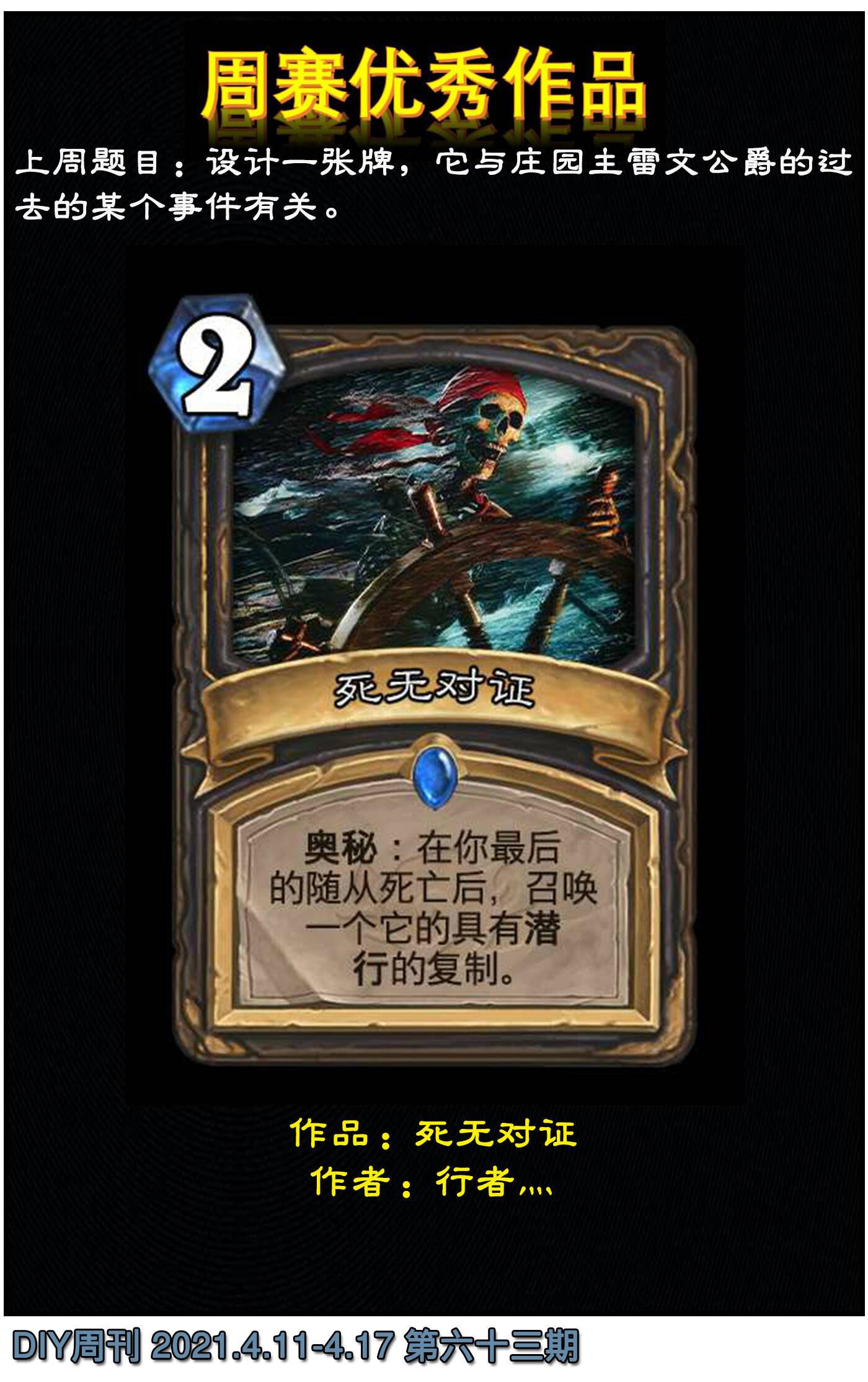 【要求】杰西和斯卡尔之后的故事里似乎找到了些线索。设计一张牌,它是一个有关于某个嫌疑人有凶杀嫌疑的线索。