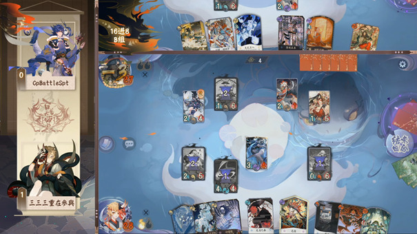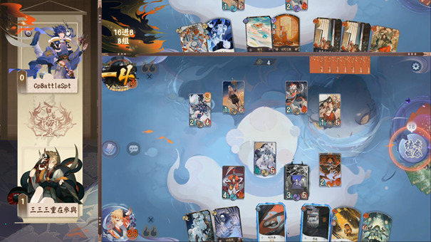 这里我们观察BattleSpt选手的手牌,即使解掉三三三的铃鹿御前也势必再次空场,完全处于进退维谷的局面。所以三三三这里的一波血量压力做的非常的到位。