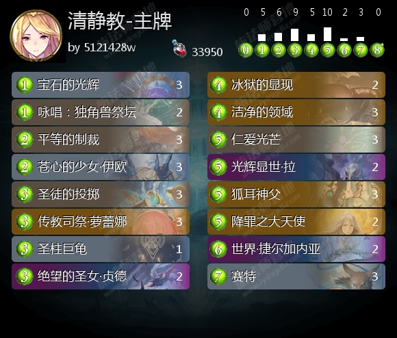 在理清我们的取胜思路后,我们来看一看清净教的卡组构成: