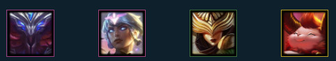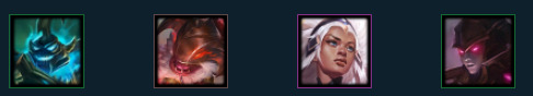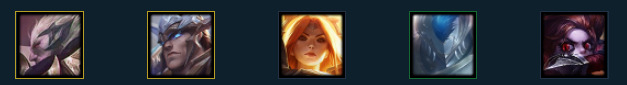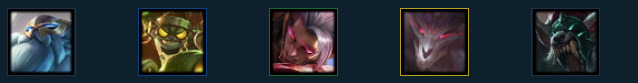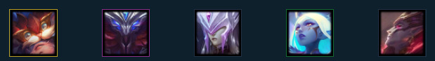英雄:卡兹克(1),乐芙兰(2),卡特琳娜(3),魔腾(3),黛安娜(4),佛耶戈(5)