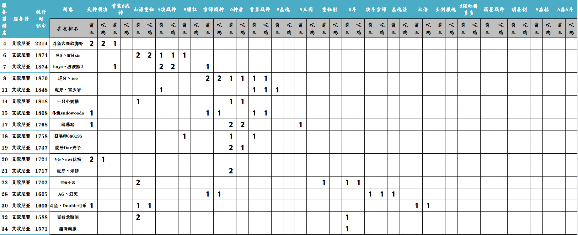 本周外服吃鸡前三强:宗师战神、龙魂法、6战神。