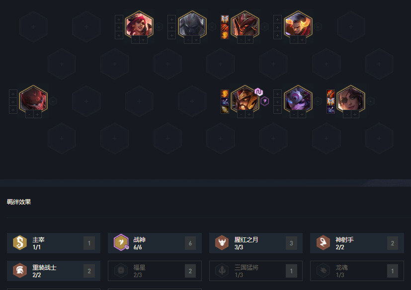 战神体系——重装6战神(沙弥拉、拉夫、蛮王)、4决战神(蛮王、沙弥拉)、宗师战神(蛮王、沙弥拉)、重装战射(奥拉夫、沙弥拉)