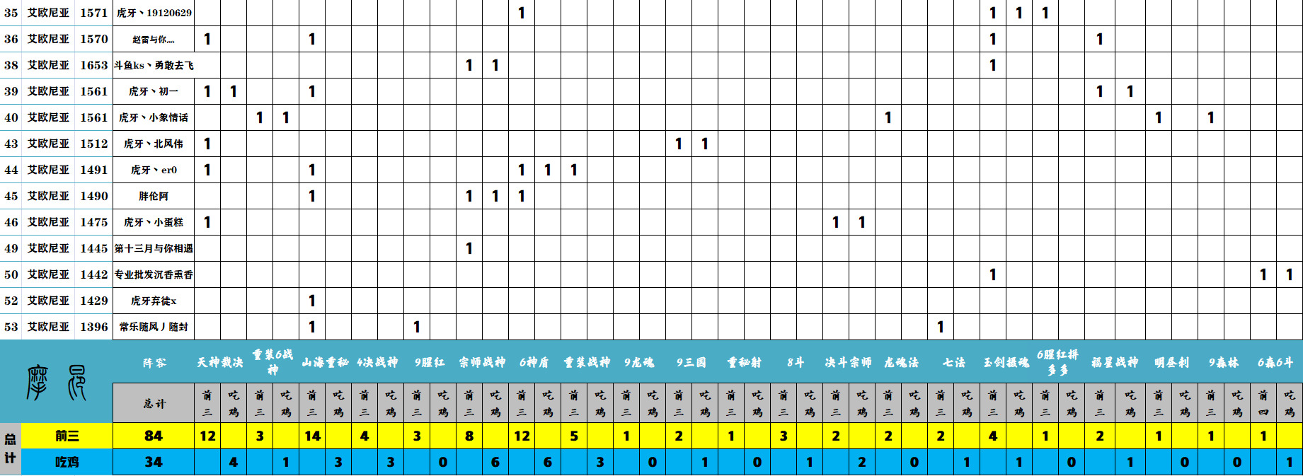 本周共统计150场游戏对局。涵盖了21种阵容体系。共进入前三名场次84场。共计吃鸡场次为33场。