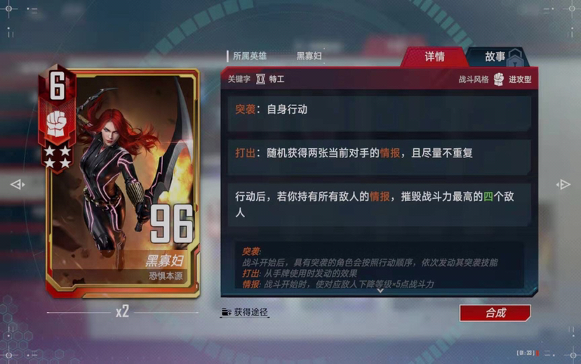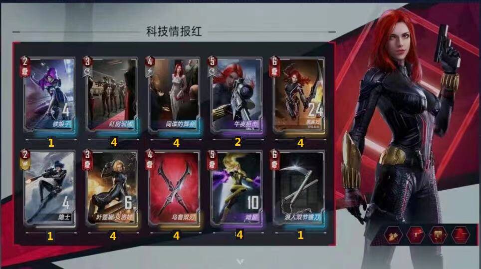 核心思路:利用黑寡妇的情报把敌人血量尽可能降低,然后利用高星暗星加倍强化情报效果,以至于让大部分敌人丧失行动能力,然后用红队加上情报红秘闻武器“乌鲁双刃”来终结对手。