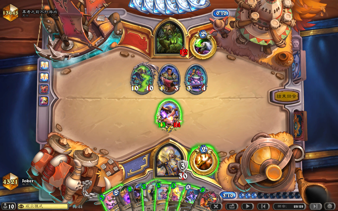 大家好,我是Joker#524565,也是【营地炉石卡组日报】20210421 中节奏牧卡组的投稿者,在这里还是要事先声明一下,原卡组为wcysai玩家的构筑,我在看到其中的亮眼单卡后,在原基础上将一张狂乱改为神圣惩击后在传说1W5左右开打,截止至4.22撰稿时全程使用改动后的卡组共50场次胜率70%排名最高打到了3400+。