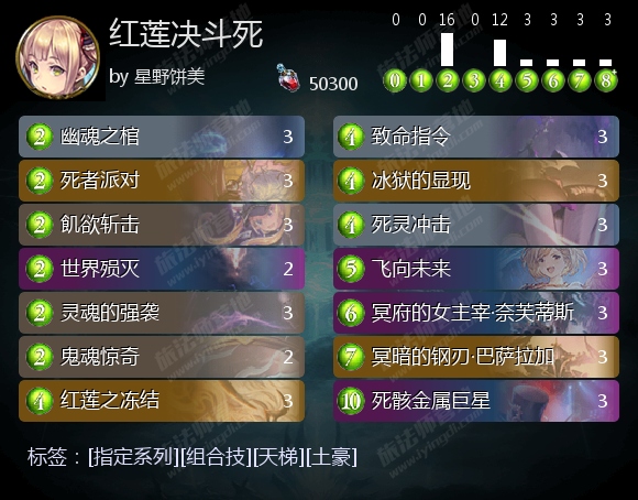 死者派对也很适合决斗死。它能提供过牌、直伤和堆墓——在第2~3回合使用派对的话,到第7回合能总计打出4点直伤,配合2张巴萨拉加、吃墓冲击和进化点,便可以完成分段的满血斩杀。