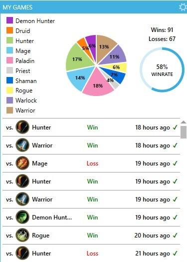 因为恶魔猎手形态不动所以情况也不一样,这套牌在面对节奏瞎的时候有一定的优势,但是几乎打不过吸血瞎,因为他们的回复量实在是太高了。说实话,我遇到的恶魔猎手都是千奇百怪的,大家的构筑都不一样,而且现在好像在高分段大家也没有达成卡组构筑的共识,所以我觉得具体的对局也没什么好说的, 毕竟卡可能带的不一样只能随机应变了。