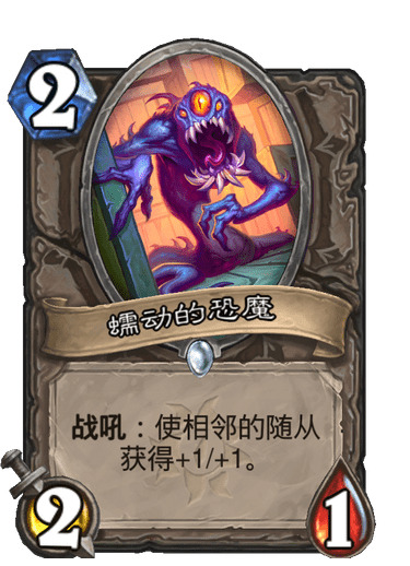 曼克里克:这张牌本身非常的强,其他的节奏卡组几乎是必带这张牌的,但是我们萨满这个职业和抽牌完全沾不上边,我们这套卡组几乎没有过牌,所以我放弃了。我觉得他可以和蠕动的恐魔竞争一下卡位,如果你觉得你能在中期抽到老婆的话(