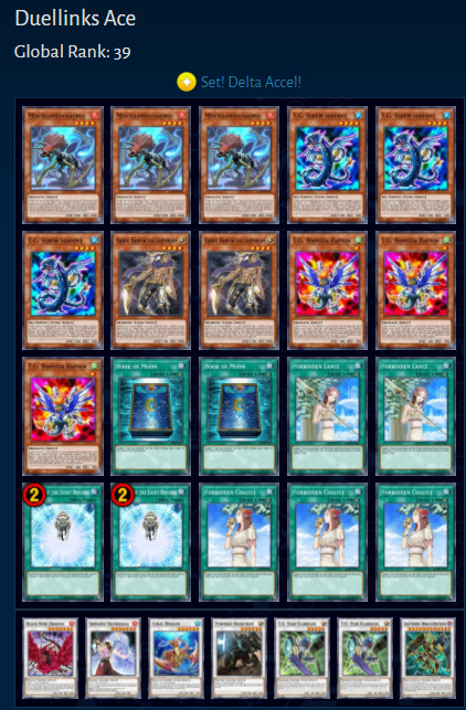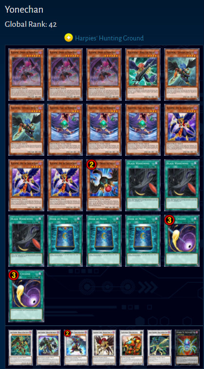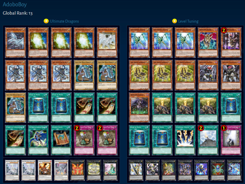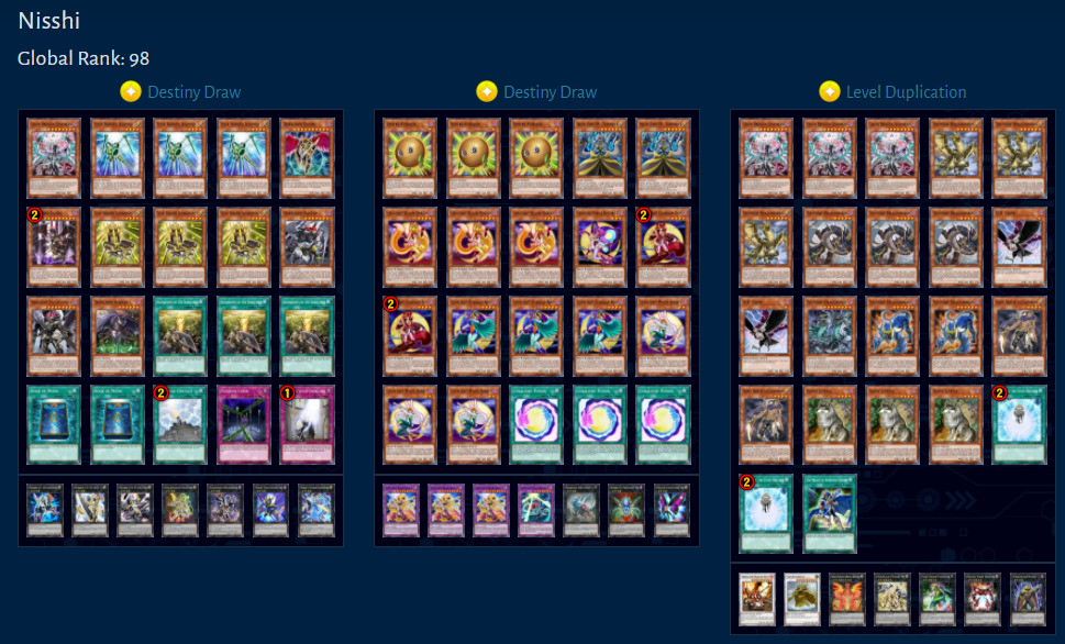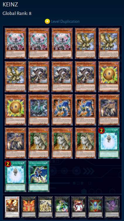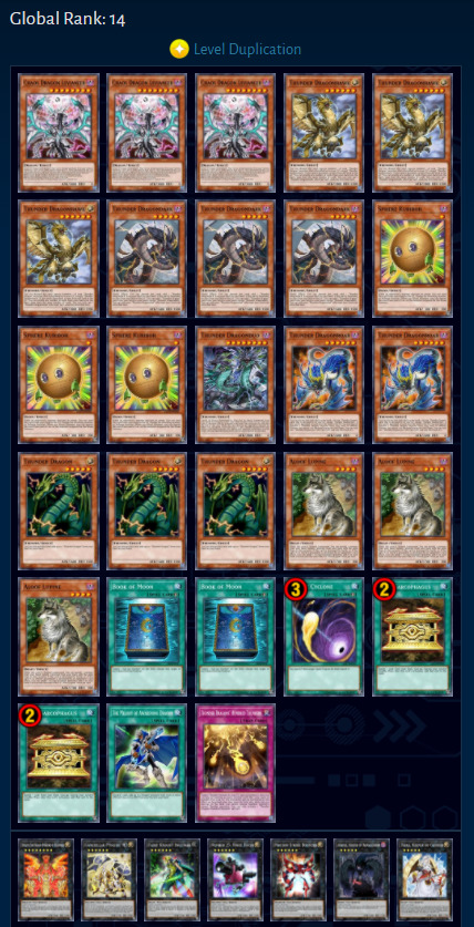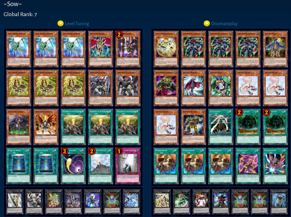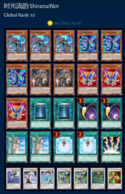 白龙卡组、杖座堕天使卡组、拟声卡组、神鹰卡组、电子龙卡组、雷龙卡组、月光卡组