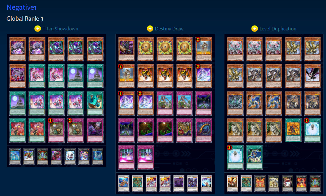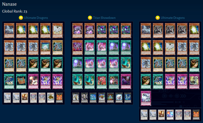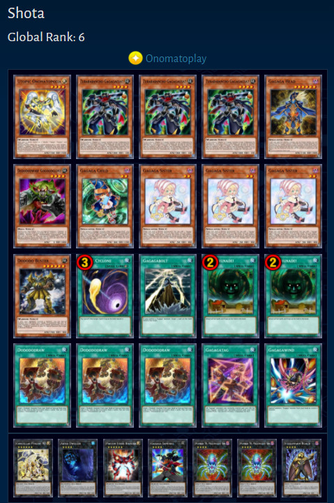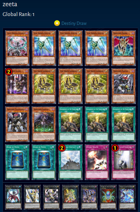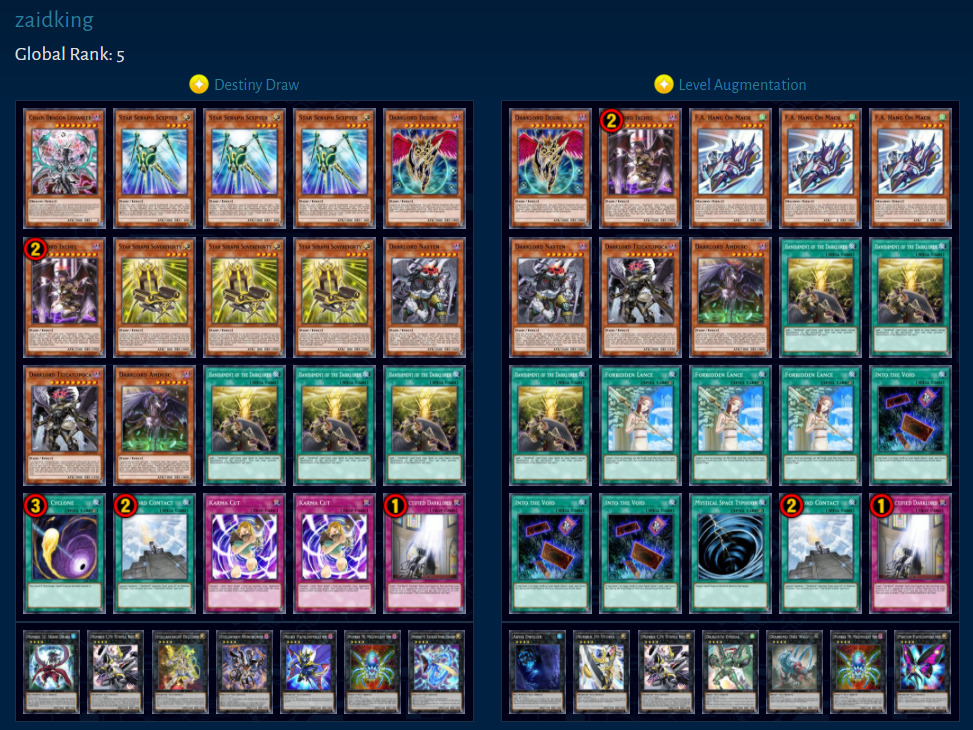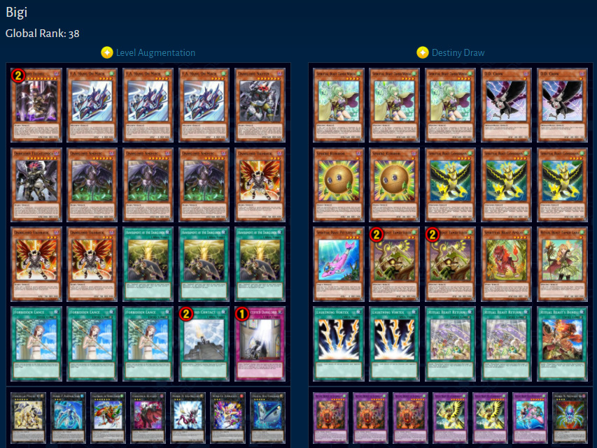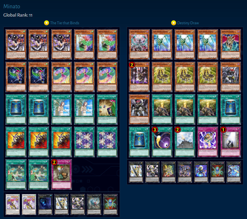白龙卡组、杖座堕天使卡组、拟声卡组、神鹰卡组、电子龙卡组、雷龙卡组、月光卡组