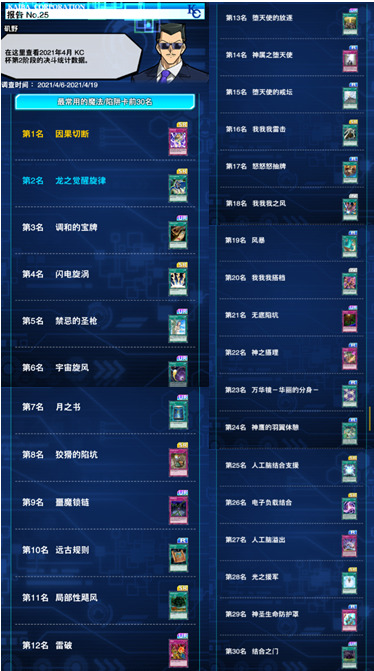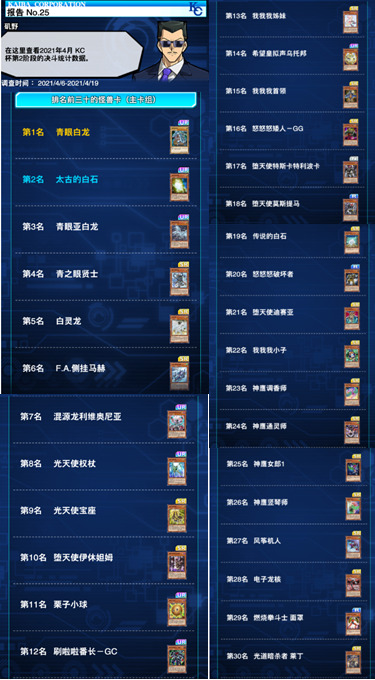 综合官方数据,我们可以得出2021年4月KC杯第二阶段卡组使用率由多到少的排名大致如下: