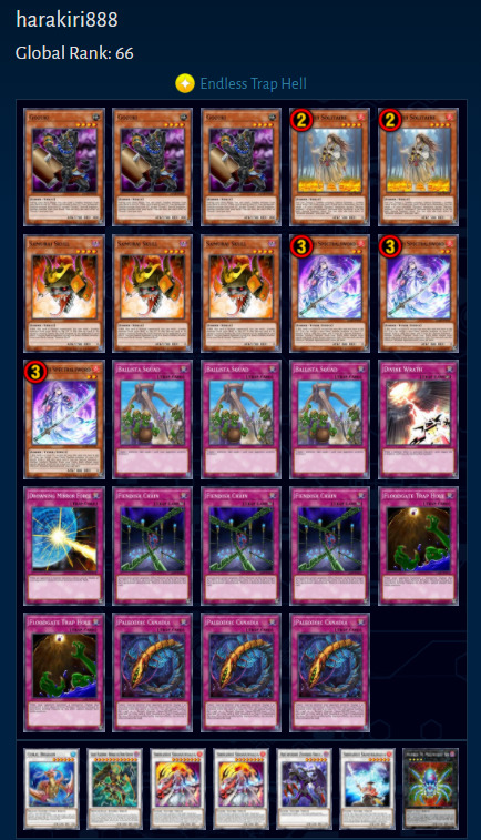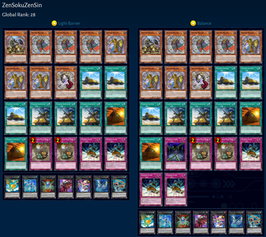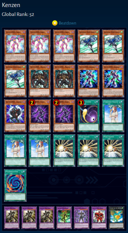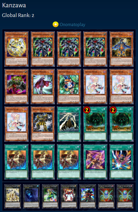 当然这个表单纯的也是基于我个人对当下环境的理解和认知而写的,比如这次KC杯中大佬专注的TG卡组,依然有战斗力的三金卡组、不知坑火、黑羽、hero、光道等卡组都不在其中,当然不代表这些卡组不强,毕竟没有最强的卡组只有最强的决斗者。