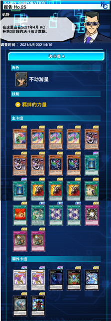 正所谓一代补丁一代神,4月KC杯后的禁限表和技能调整表虽然没出,但是一定也会有,因此4月KC杯中的大佬卡组也是对大佬们拼搏的一种纪念。对于21年4月KC杯前百的大佬卡组,就不多做介绍,其中与之前的文章一样,重复的或有相似情况的卡组,本人就不多介绍,大家可以直接上DK网站自行查询,因为篇幅有限也仅能展示部分卡组,希望大家理解。