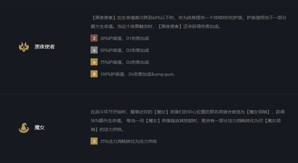 云顶之弈S5赛季光明与黑暗还有不到1周的时间就会来临,摩昂就把自己在PBE服务器测试出的强度较高的阵容推荐给大家,由于PBE只有匹配没用排位,阵容强度可能会有出入。今天摩昂给大家带来的阵容是黑夜魔女传。