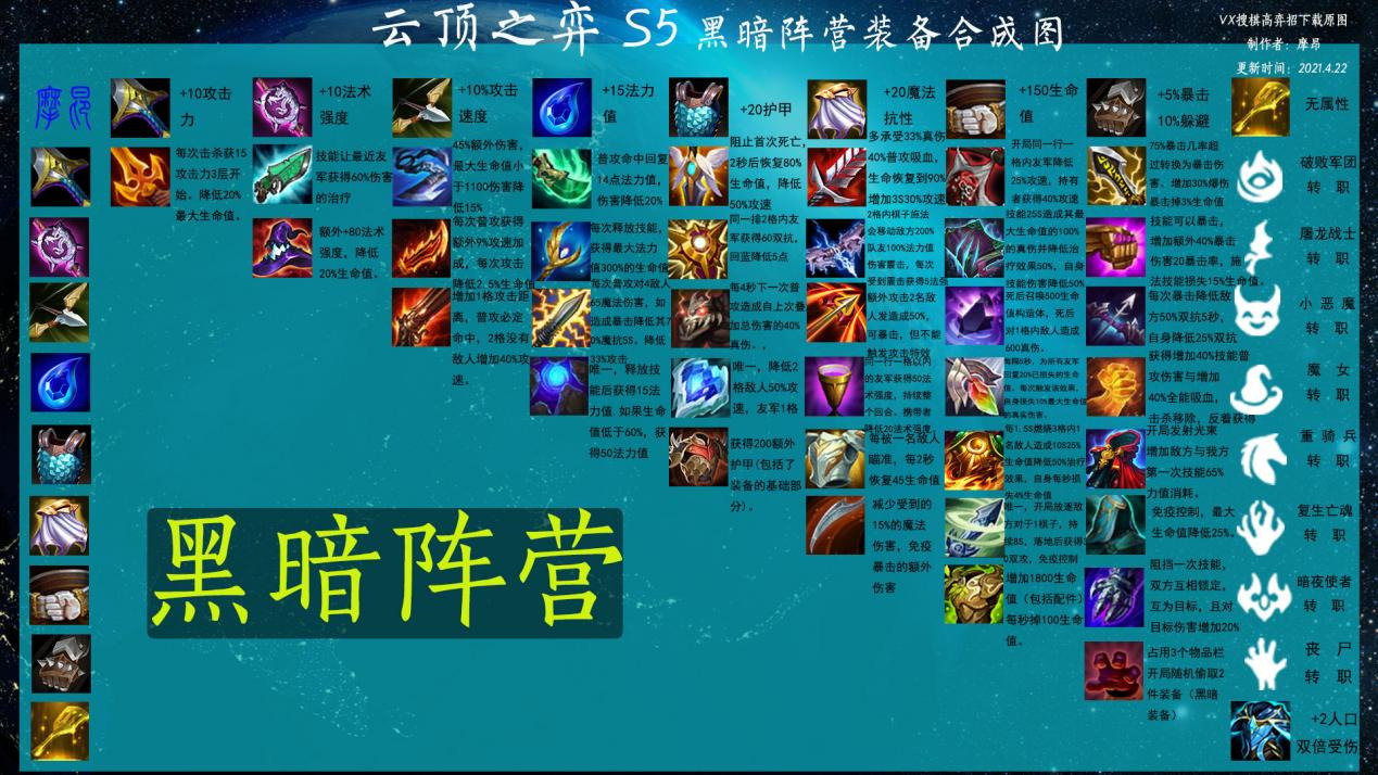 S1—S4.5赛季云顶都只有9种散件装备,但S5赛季还会出现9种相对应的黑暗散件装备。