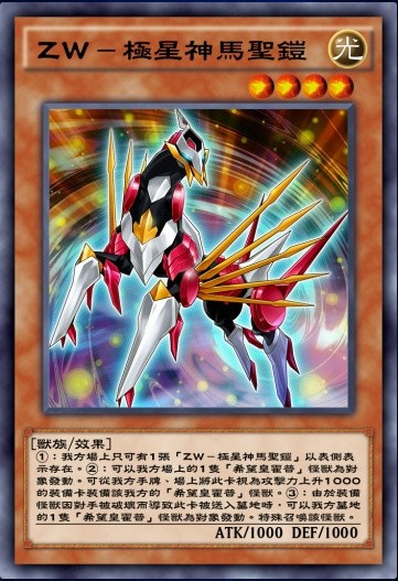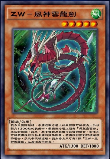 新字段【异热同心】。【希望皇 霍普】之名怪兽的专属装备怪兽卡。风神云龙剑比起雷神猛虎剑更好用,至少它能给装备怪兽提供一个不会被取对象的抗性,而雷神猛虎剑只能保自己不被效果破坏。