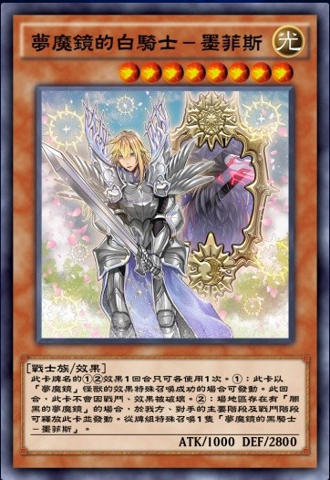 梦魔镜的黑白骑士,同样对应的也是光镜和魔镜。白骑士守强攻弱,用本家怪兽效果特召,拥有不被战破、不被效破的抗性;黑骑士攻强守弱,拥有用本家怪兽特召炸场的效果。两者同样可以互换登场。在没有本家融合终端的情况下,这两张就是本家主力终端了,当然了你也可以考虑叠R8。