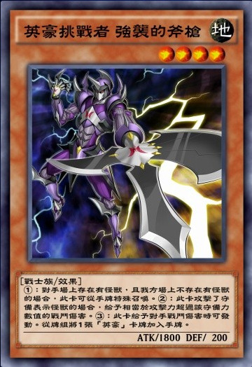 朴实无华一张战士族泛用R4,一回合一次可以康陷阱卡的效果很实在,之后的加攻效果让其很容易达到3000的高打点。