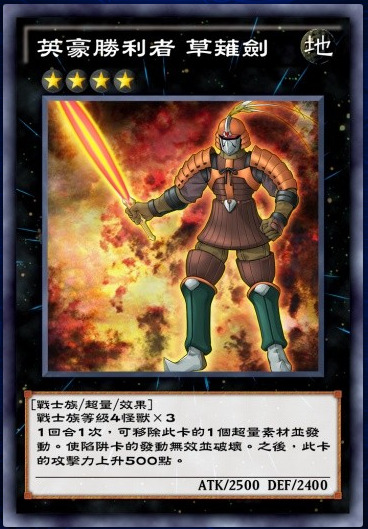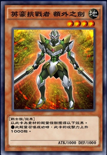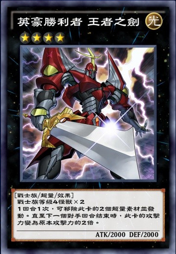 战士族强力泛用R4,除了英豪本家,同样适用于英雄、六武众、圣骑士、亚马逊等卡组。发动效果拥有4000的超高打点,而且可以持续到下一个对手回合结束。来,跟我一起喊出那个口号:Excalibur !!!!!