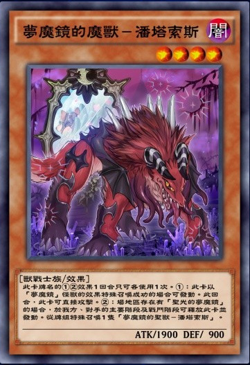 这两只梦魔镜的怪兽和光暗骑士/少女梦魇类似,都是互相跳。圣兽可以从墓地拉黑骑炸怪,拉白骑苟场,也可以拉少女检索,拉梦魇再拉手牌其他梦魔镜怪兽。总体来说比魔兽的当回合可以直接攻击的效果要好用的多。魔兽的作用更多的就只是拉出圣兽而已了。