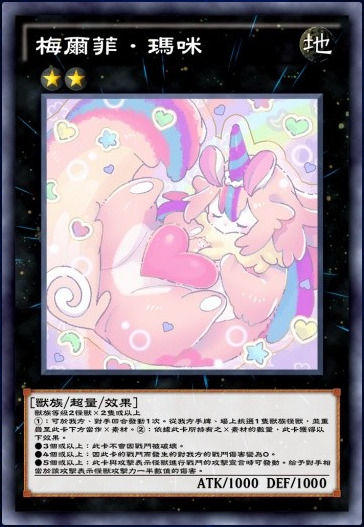 童话动物本家超量终端之一,用【魔兽的怀柔】可以直接一卡出,出场即拥有不会被战破的抗性。没有需要拔垫子发动的效果,但是拥有5个垫子之后,就是一个加强版的碰瓷战士。
