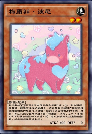 新字段【童话动物】(繁中因为是直译,大家体谅一下)。①效果是本家下级通用效果,对手召唤、特召怪兽或者此卡在被选为攻击对象时,返回手牌,然后触发一个效果。小马这里是回收墓地除此卡以外的等级2的兽族怪兽一只。②效果同样是本家通用效果,我方结束阶段,从手牌特召此卡。