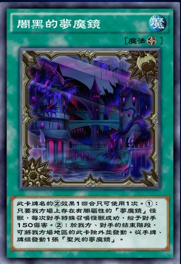 新字段【梦魔镜】。少女是本家检索,魔镜这卡因为可以配合少女的②效果混了个ur卡位,要不然就他这个甚至被阉割了一半的效果伤害,我觉得它就应该和光镜一样,是个R卡才对。②效果除外自己从卡组发动光镜。